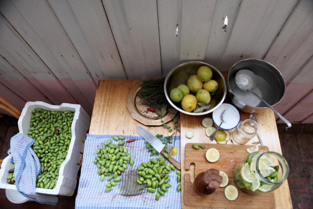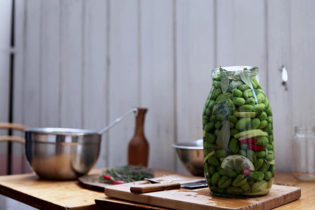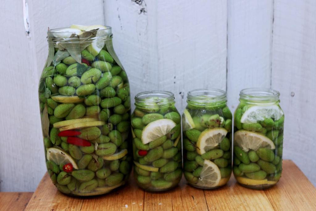 How the process of making them digestible involve crushing or slicing them a little, washing them for weeks, then placing them into jars with brine. It is only with time, the healer of all healers, that their internal bitterness extracts into the brine. Making them edible. palatable. digestible.