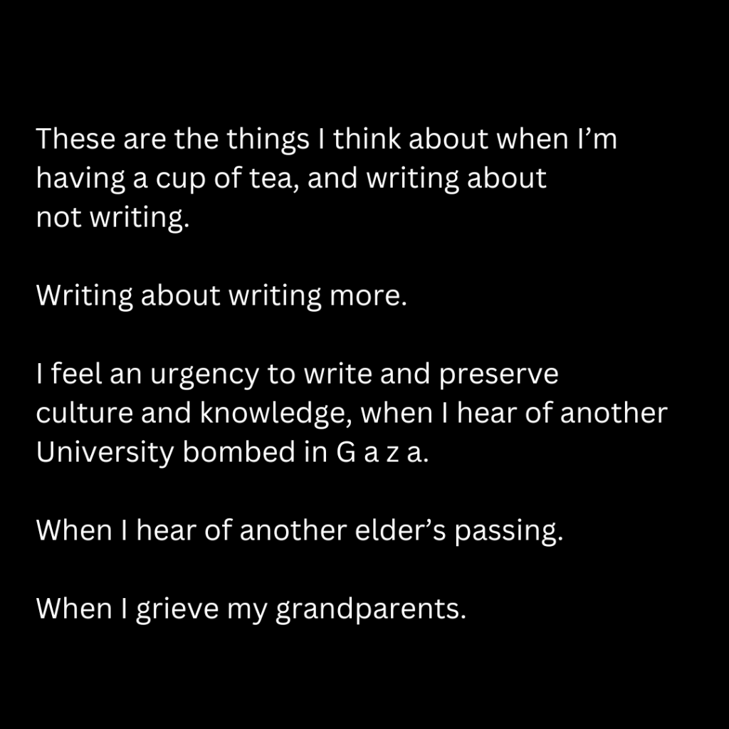 Land, 1000 words. In this non-linear essay, Rasha Tayeh shares an intimate reflection from her lived experience and draws on the parallels of settler-colonial projects, occupying Palestine and Aboriginal Nations in the continent now known as Australia. Her words are presented in vignettes, as thoughts brewing, while making a cup of tea, or walking along the Merri Creek.