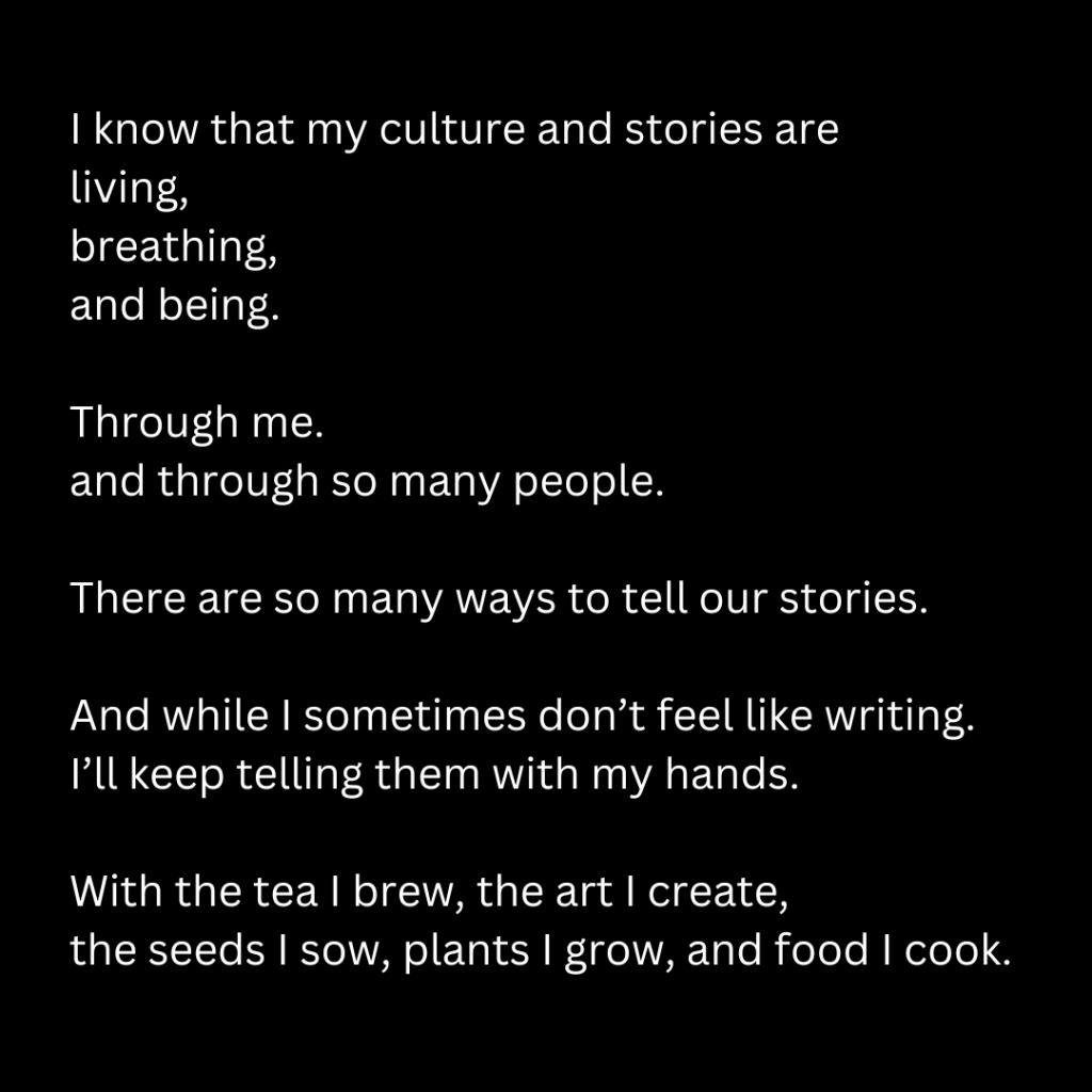 The k(not) project reflects upon the way climate change will and has already created major public health impacts for our communities and provides a platform to undertake slowed-down and more expansive thinking in order to seek alternative strategies to our current crisis that incorporates food and land sovereignty alongside greater reflection upon the ongoing racialised violence that is inherent within climate colonisation itself.